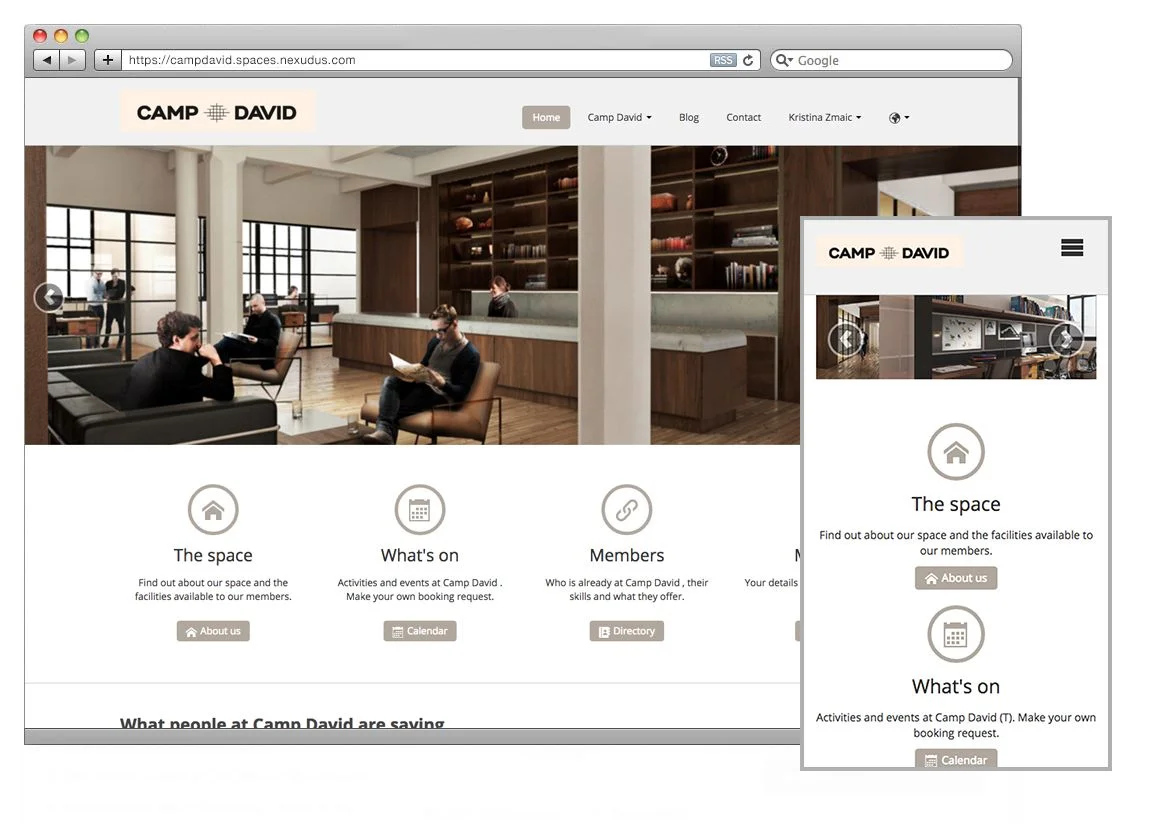 The Camp David team had chosen Nexudus as their member platform, an internal tool for members to communicate, book conference rooms, RSVP to events, and manage their billing.