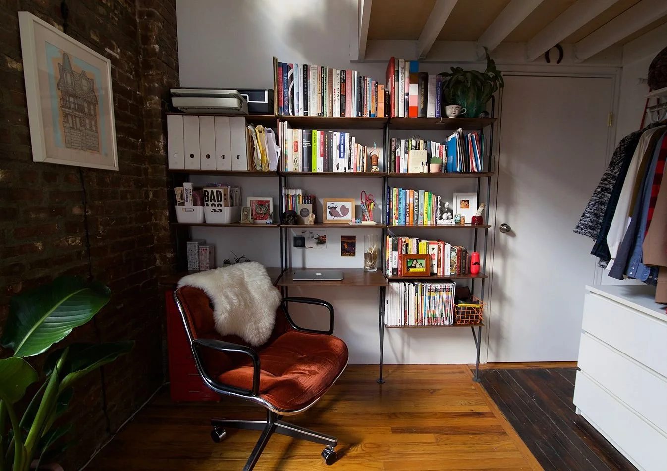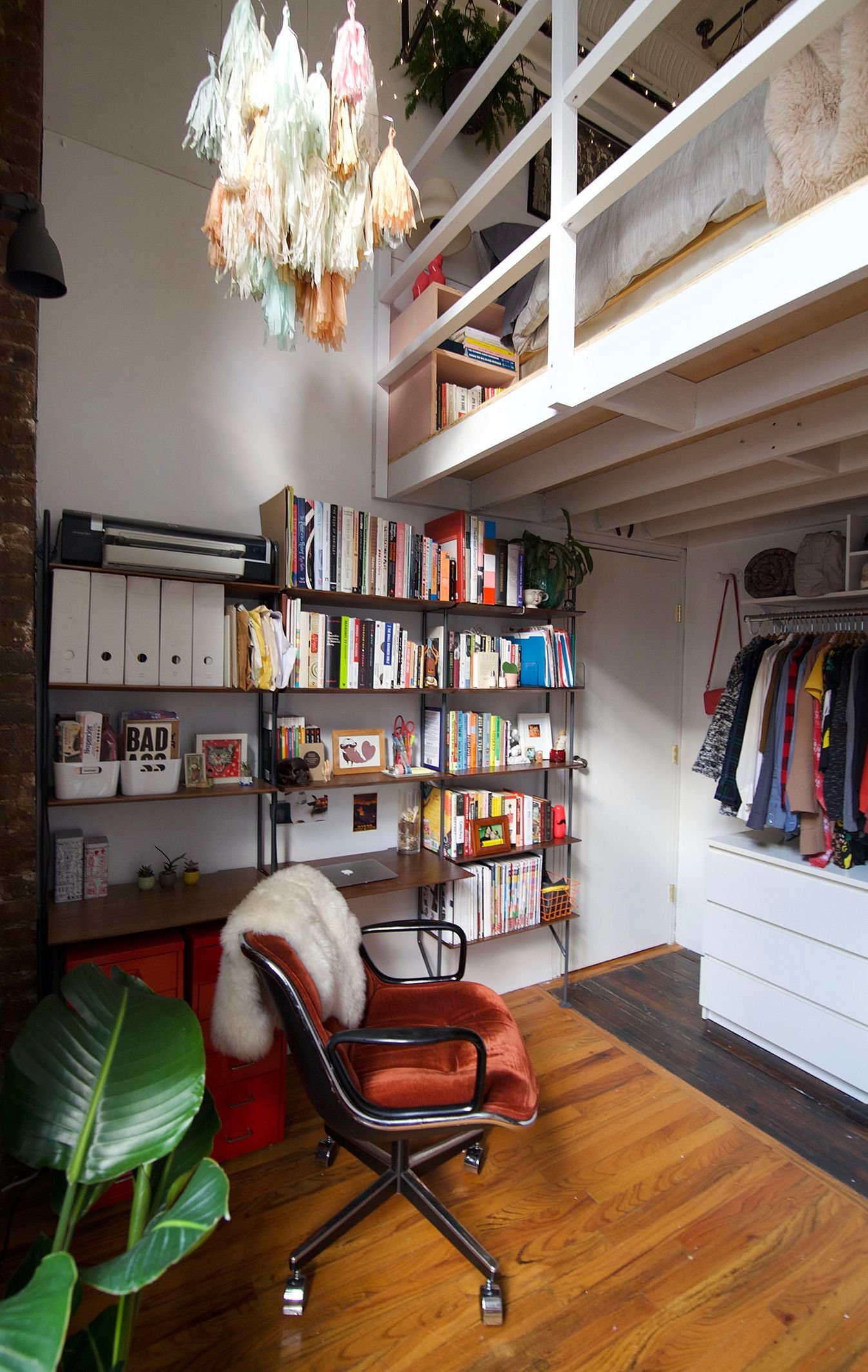 Working with a small footprint, I worked vertically to create a space that would be conducive to working from home (pre-pandemic).