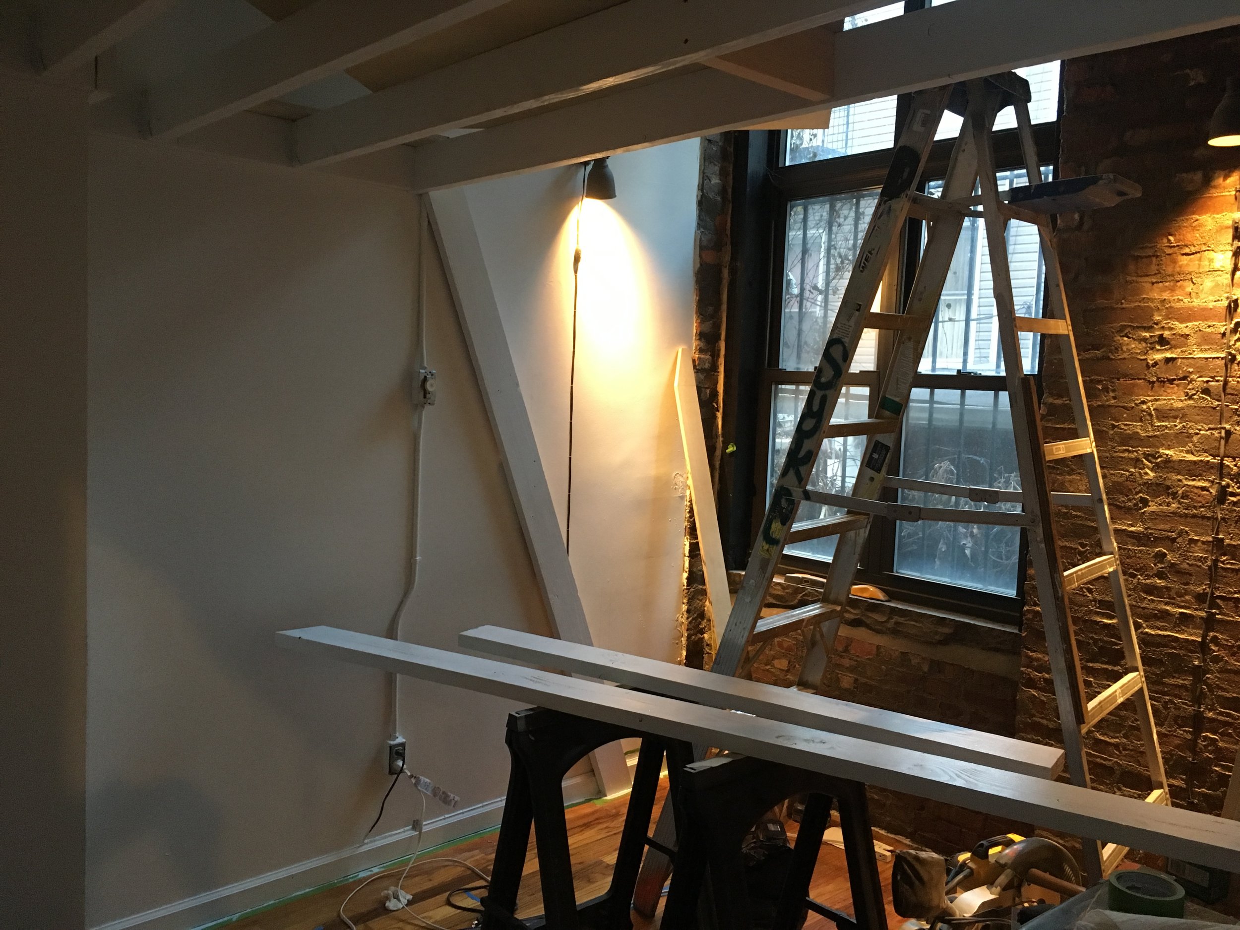 What I Did:Designed & built a lofted sleep space, staircase, closet, and sound-dampened walls to the ceiling